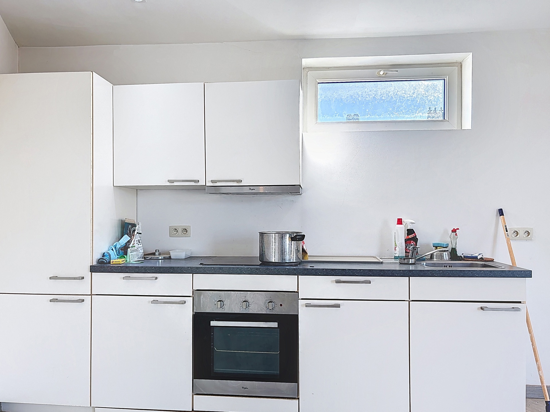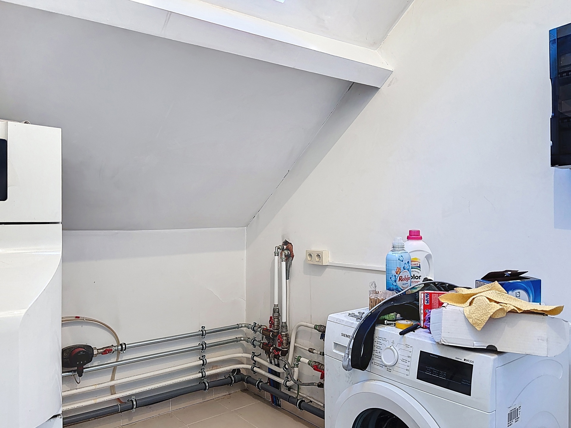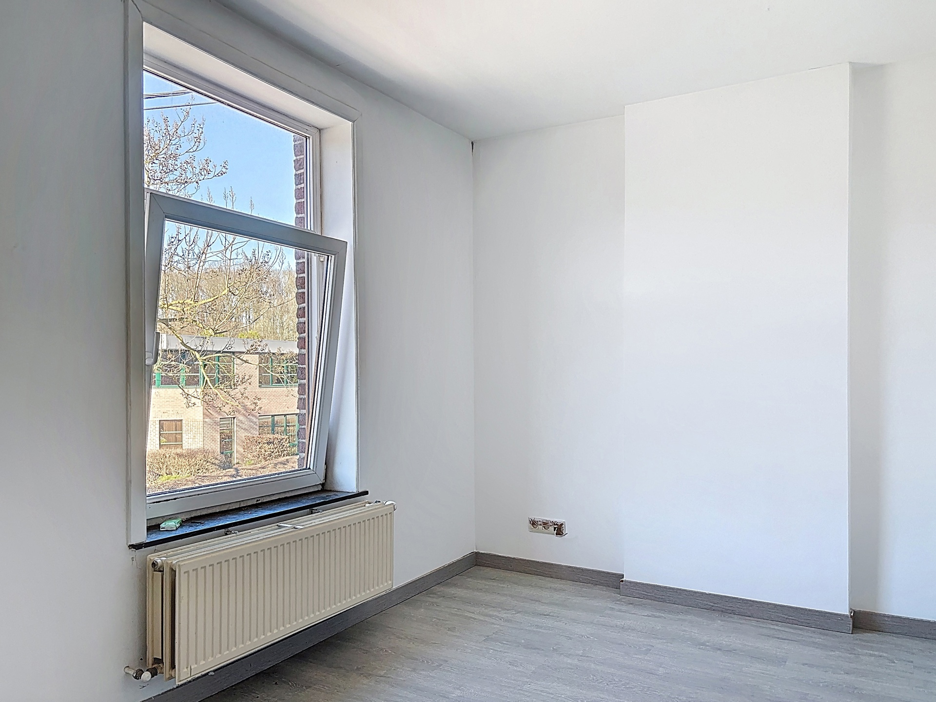 L’appartement se compose comme suit : un hall d’entrée donnant accès à l’étage où se trouve la partie principale du logement. Un second hall dessert une buanderie ainsi qu’une salle de douche avec WC. L’appartement dispose également de deux chambres d’environ 12 m² et 11 m², ainsi que d’un séjour spacieux et lumineux de +/- 38 m² avec cuisine ouverte entièrement équipée. Stationnement aisé à proximité.
