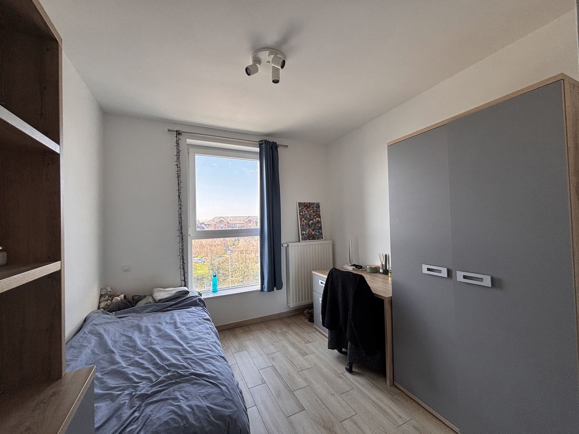 Lauzelle – Chambre n°4 au sein d’un appartement 4 chambres, située Rue Courbevoie 07/402, dans le nouveau quartier de Courbevoie, à proximité du centre commercial de l’Esplanade, des transports et des facultés. La chambre dispose d’une douche et d’un lavabo privatifs.