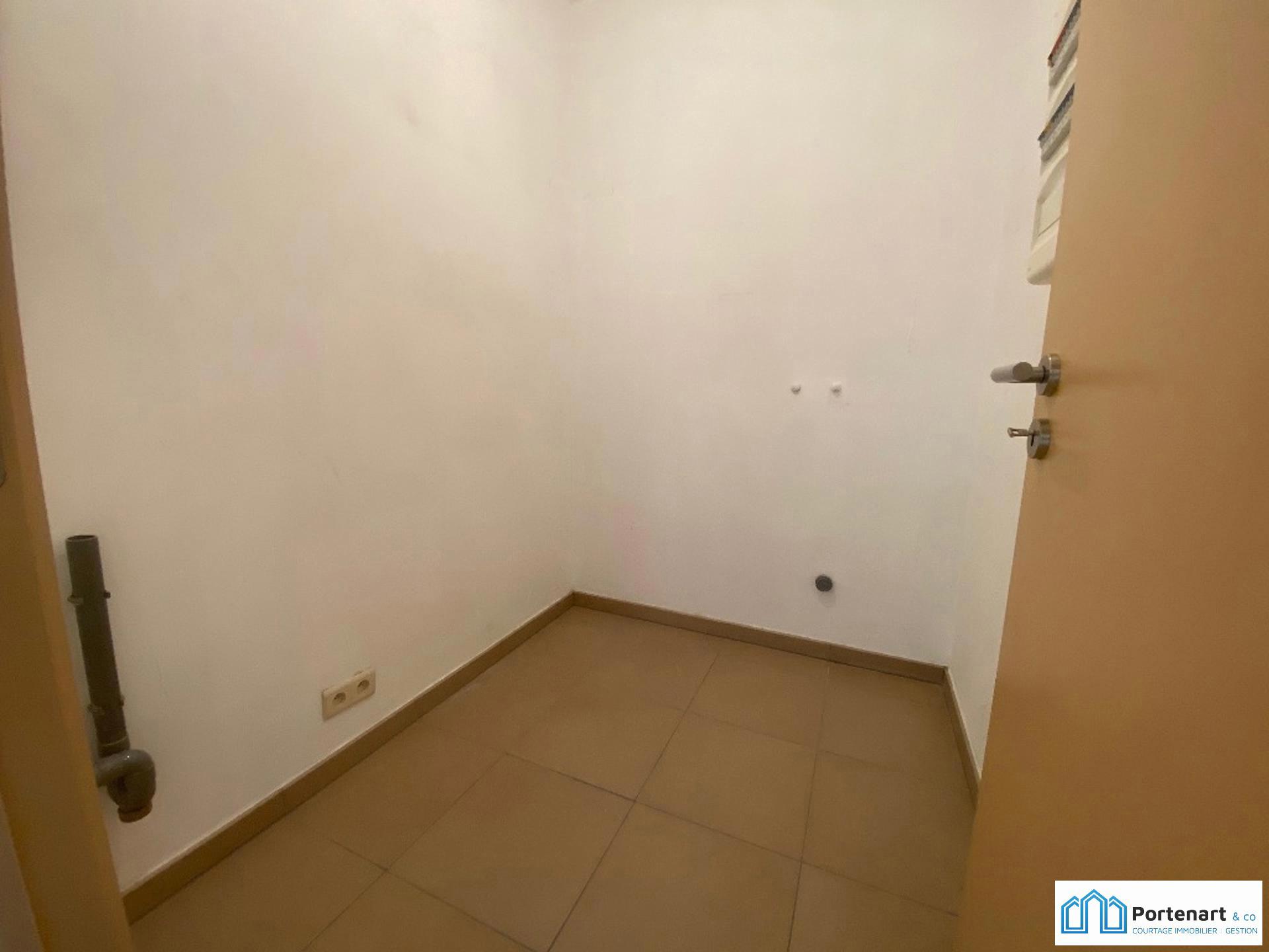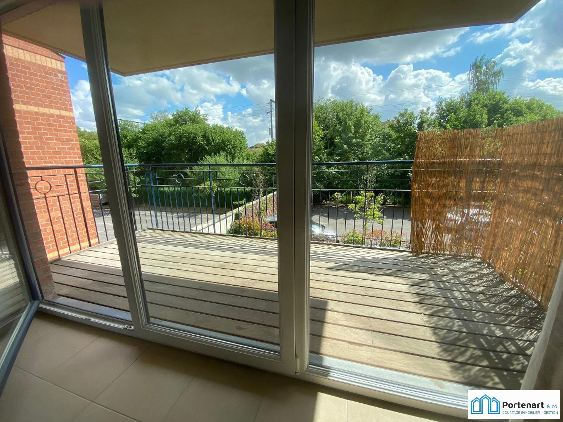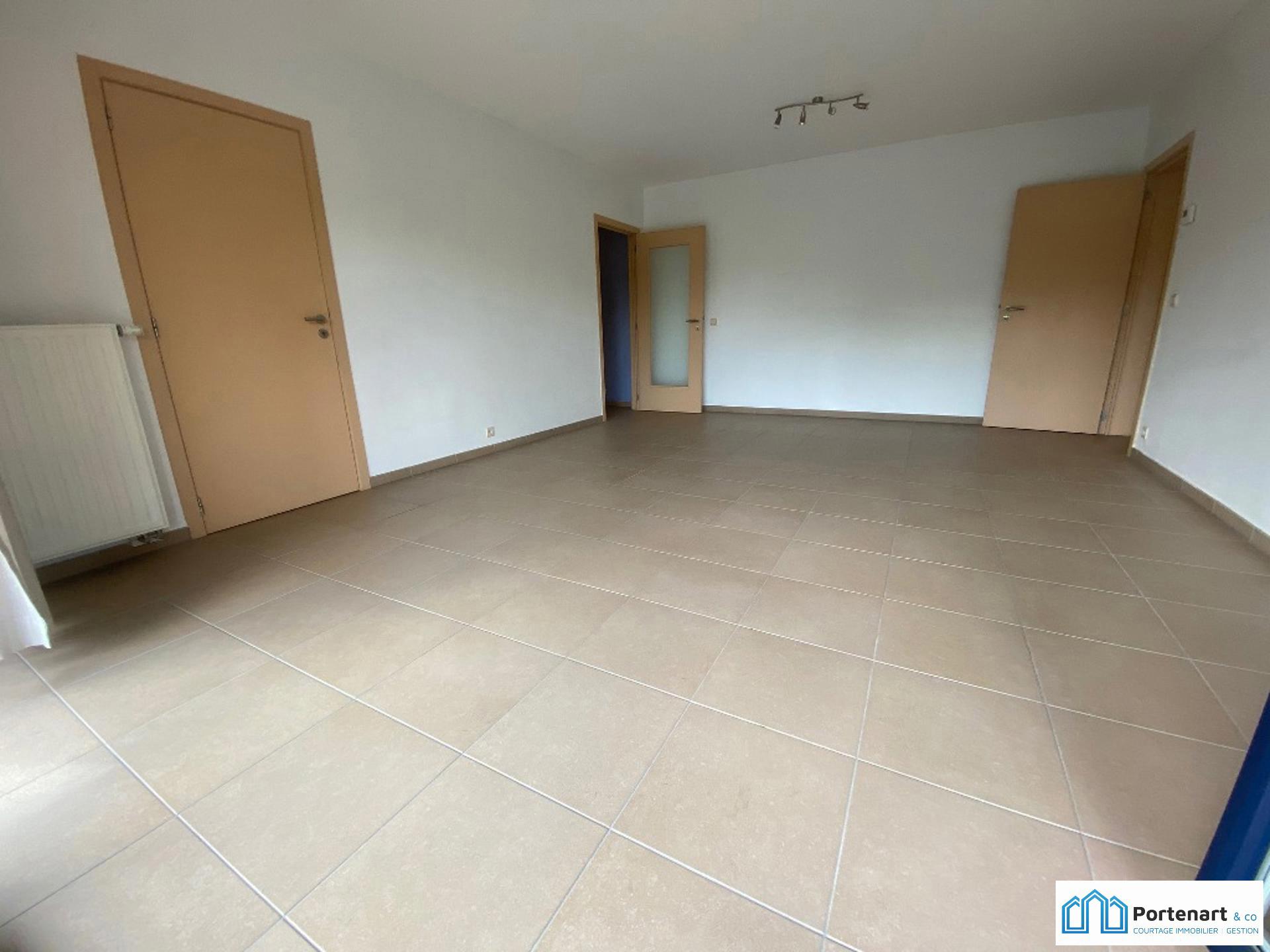Il se compose d’un hall d’entrée avec vestiaire, d’un agréable séjour de ±25 m² donnant accès à une belle terrasse d’environ 10 m², d’une cuisine séparée équipée, d’un hall de nuit desservant deux chambres de ±14 m² chacune, d’une salle de bain, de WC séparés, ainsi que d’une buanderie. Un emplacement de parking privatif en sous-sol avec accès sécurisé complète le bien.