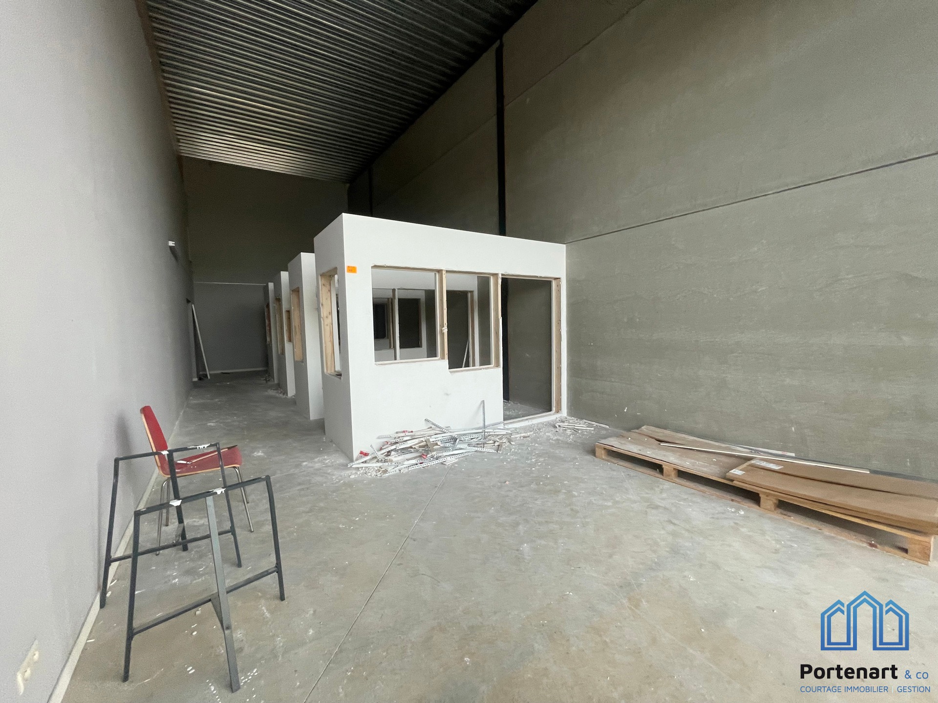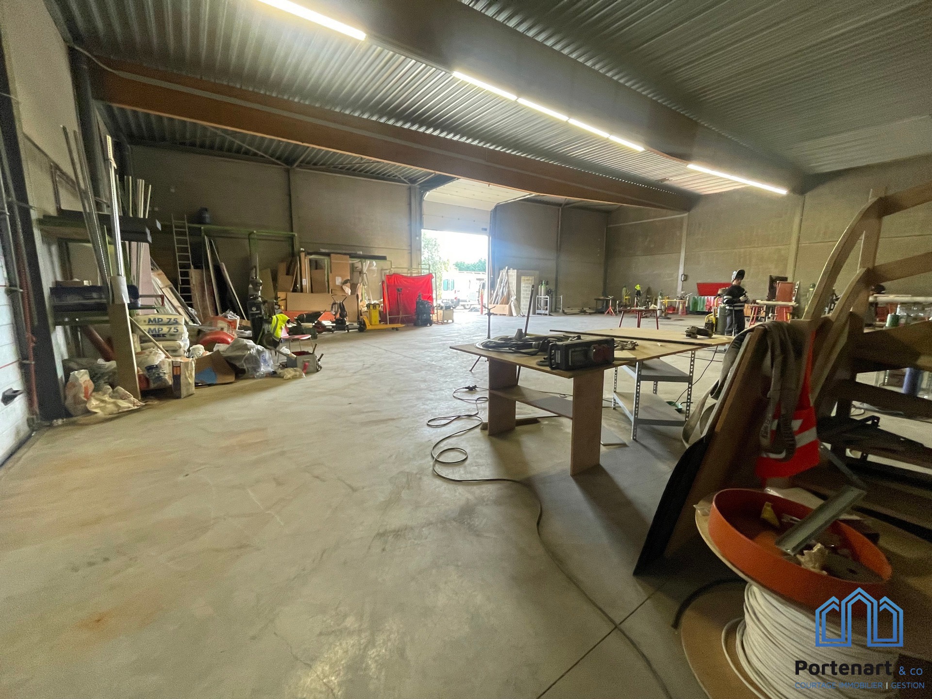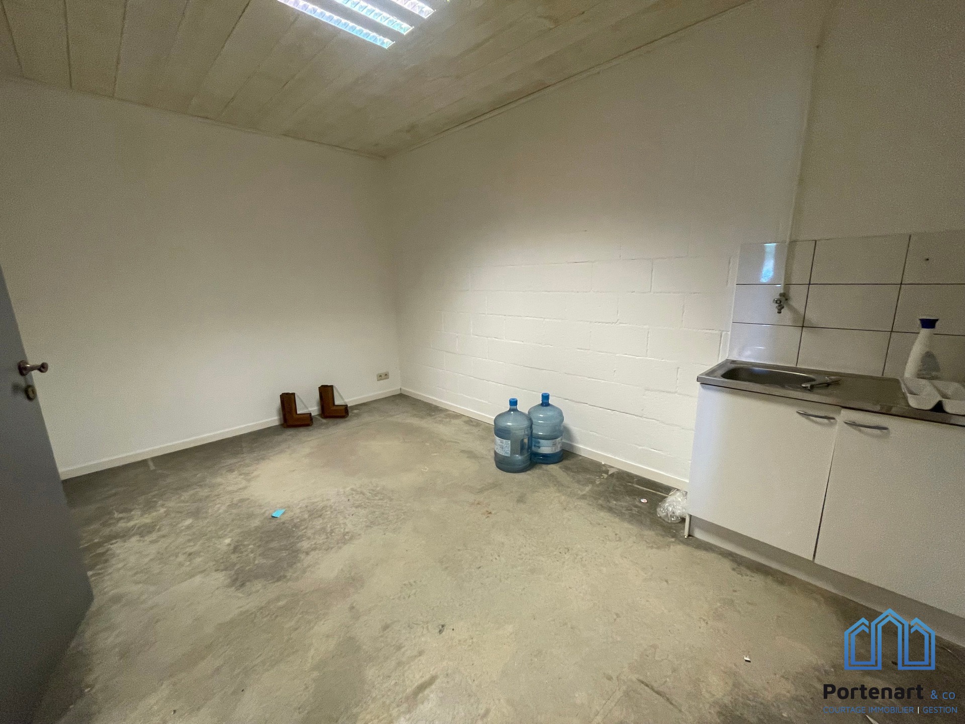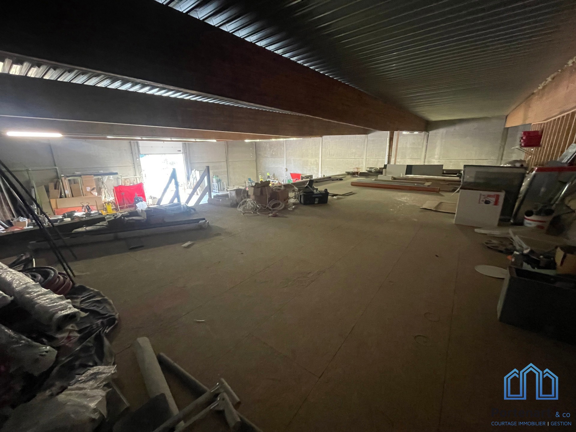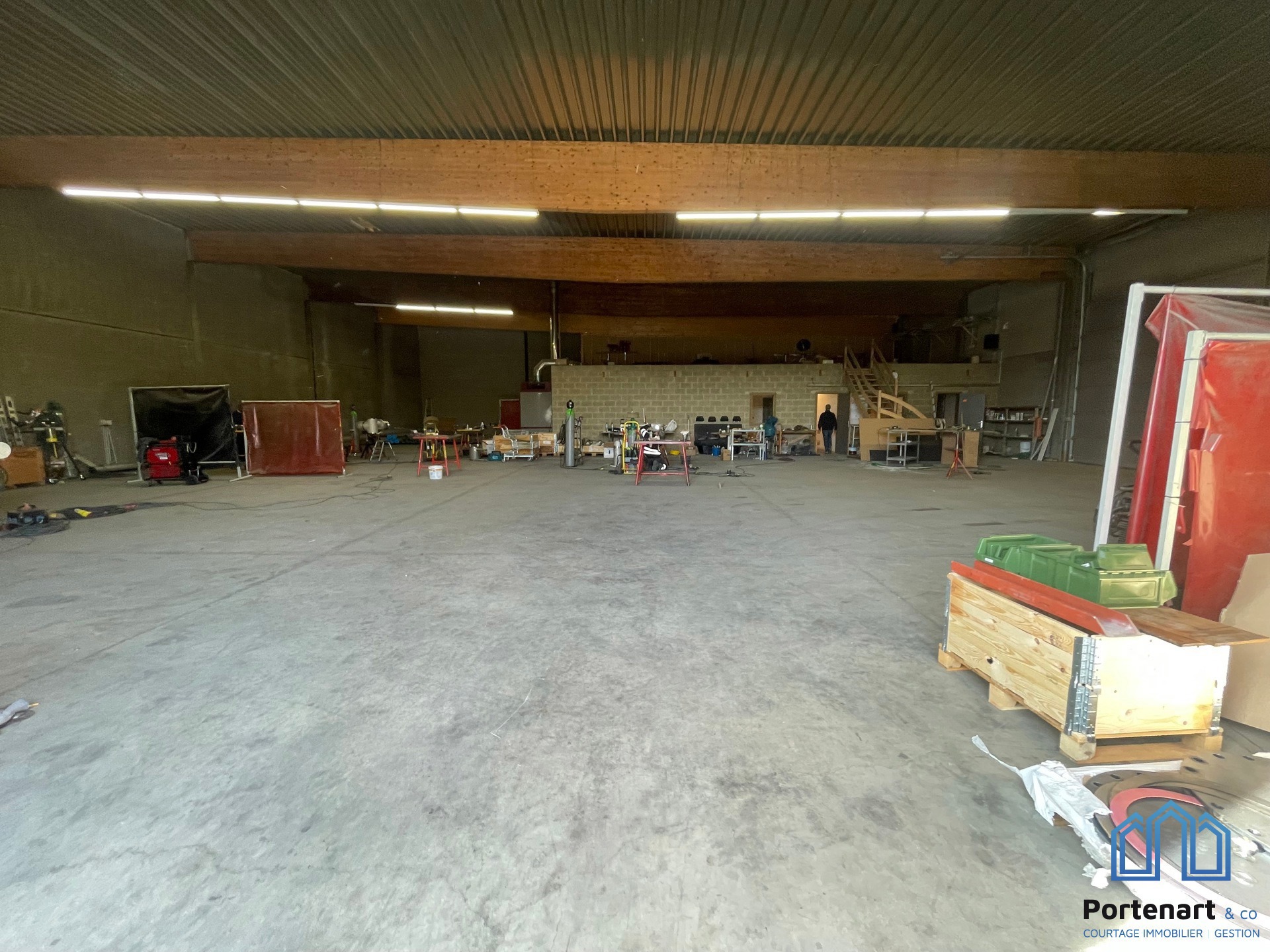 Entrepôt d’une superficie totale de 750 m² (surface hall : 570 m² et 180 m² de bureau à l’arrière + mezzanine au dessus de l’espace bureaux).
