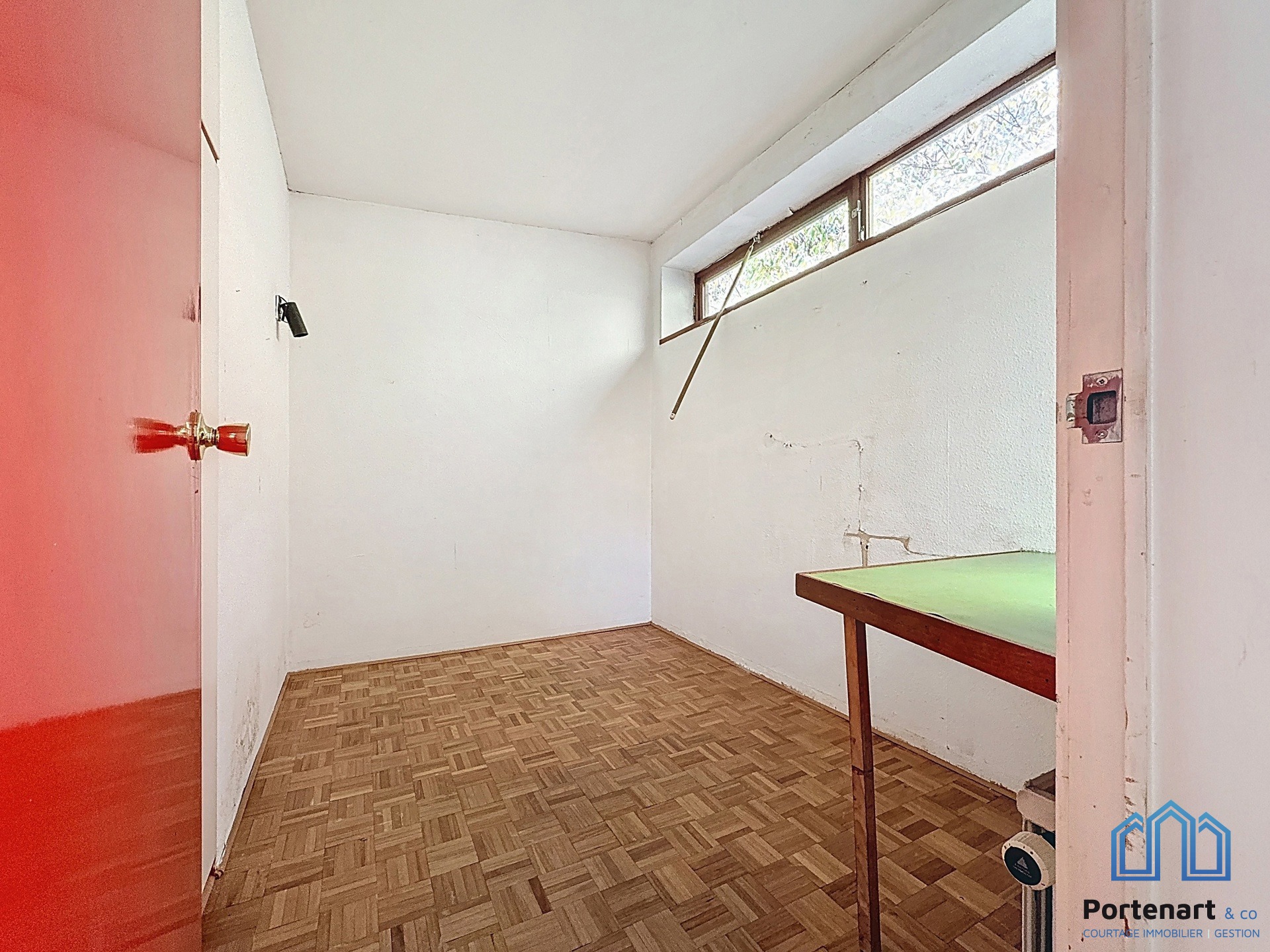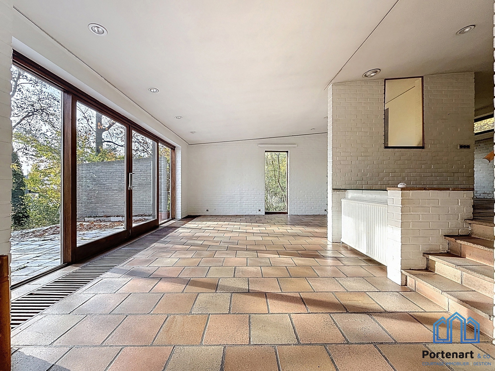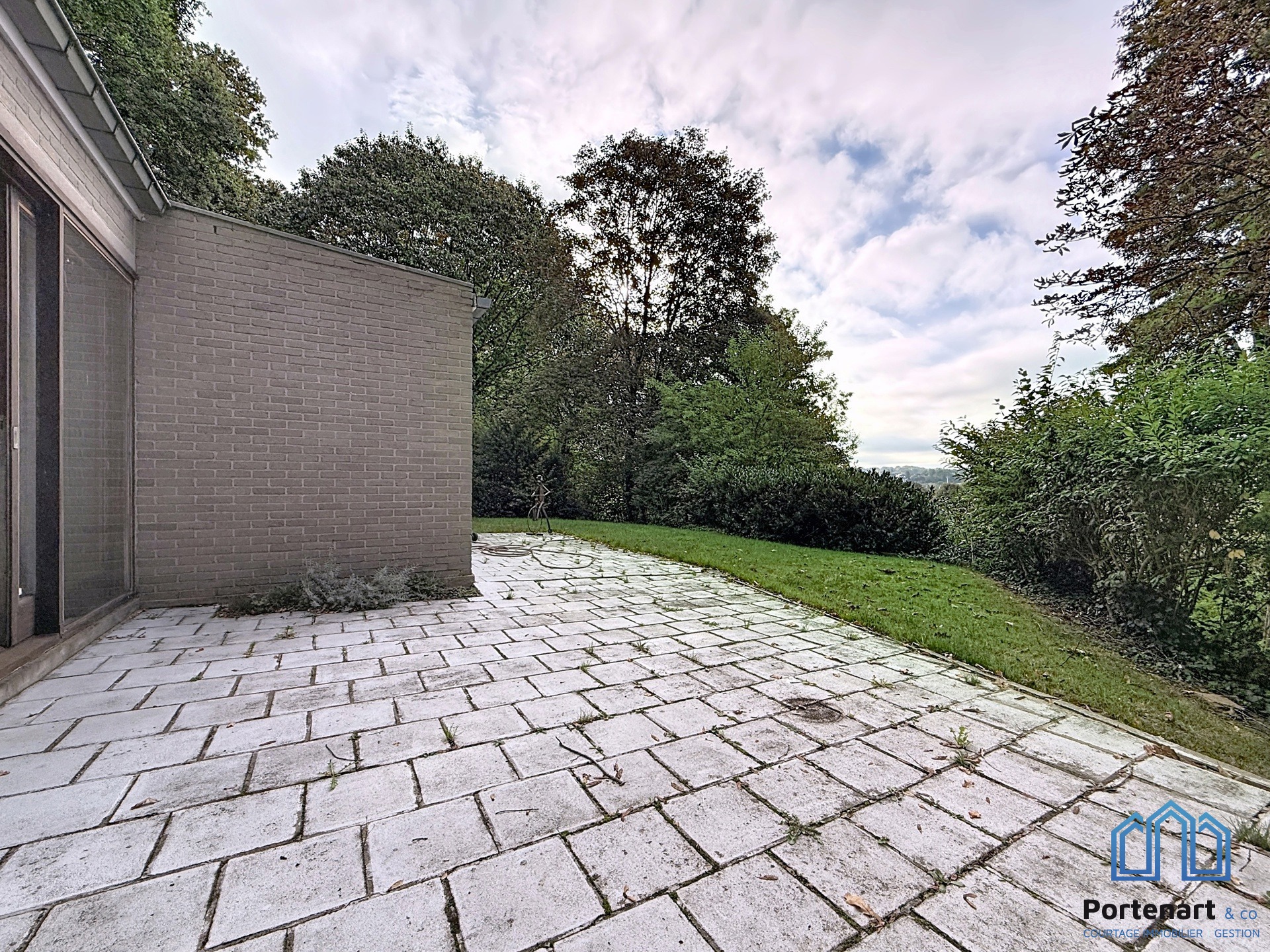 Magnifique villa à rénover située au calme d’une petite voie sans issue à deux pas du centre et donnant directement vers un chemin piéton propice aux balades. Les lieux sont répartis principalement sur deux niveaux et comprennent un vaste séjour de 75m², une cuisine de 37m², une grande terrasse avec vue dégagée, cinque petites chambres + un bureau (possibilité d’ouverture pour avoir 4 chambres de belle taille), deux salles de bain, trois wc séparés, deux garages dont un avec un prolongement vers 45m² de caves et une pièce chaufferie. Cave à vin et à nouveau une petite cave de rangement. Budget rénovation à prévoir! Libre à l’acte.